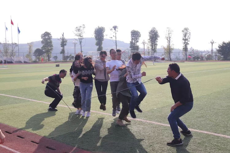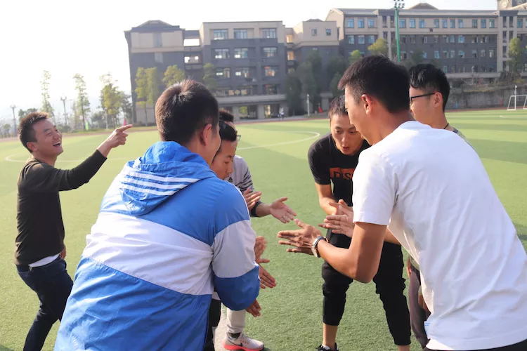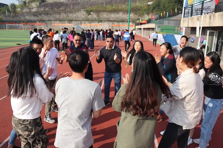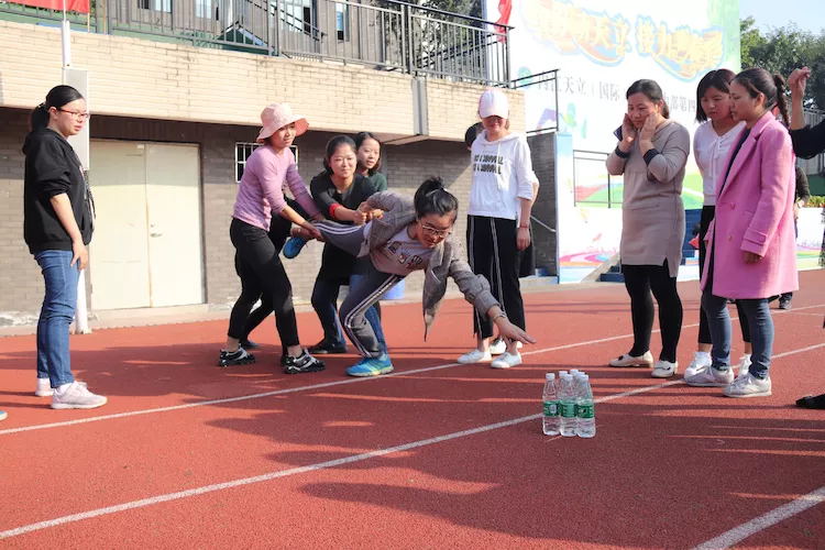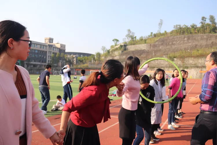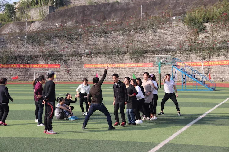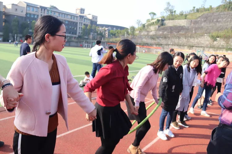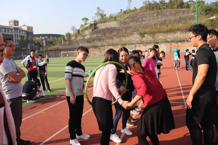 2018年11月2日下午15:30,在緊張而精彩的學生運動會結束之后,內江天立(國際)學校初中部的全體教師迎來了教職工運動會。運動會共分為四個環節:群龍取水,穿越風火輪,大河之舞與激情擊掌。初中部全體教師按照年級分為預備年級、初一年級、初二年級、初三年級四個團隊。四個團隊需按順序依次完成四個項目,用時最短者得勝。
